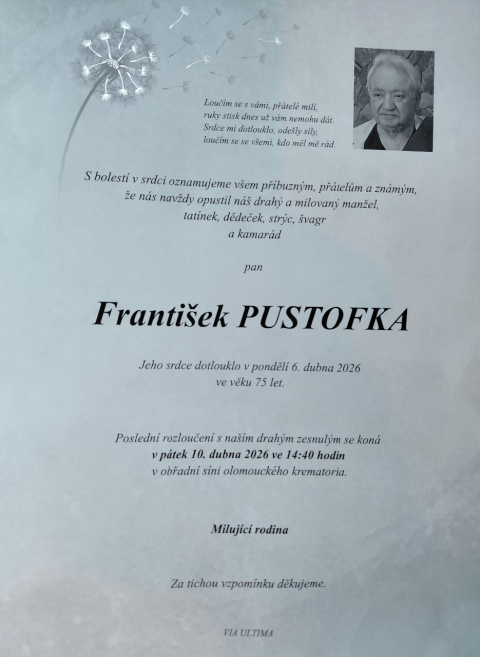 07.04.2026 19:55Bohužel v pondělí ráno zemřel